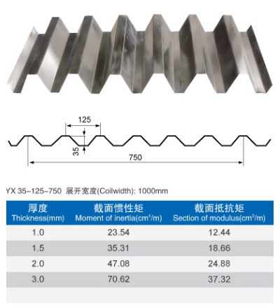 新疆彩鋼YX35-125-750型組合樓板(V-125型)--承重板系列
