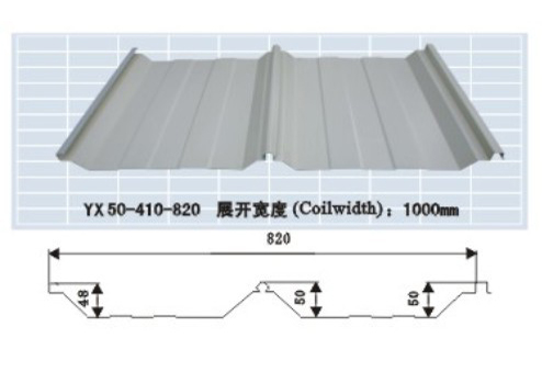 新疆彩鋼YX50-410-820型彩色壓型鋼板是采用彩色涂層鋼板,經輥壓冷彎成各種波型的壓型板,鋼板厚度一般是0.17-0.5mm,其抗沖擊性好,它適用于工業與民用建筑、倉庫、特種建筑、大跨度鋼結構房屋的屋面、墻面以及內外墻裝飾等,具有質輕、高強、色澤豐富、施工方便快捷、抗震、防火、防雨、壽命長、免維護等特點,現已被廣泛推廣應用。